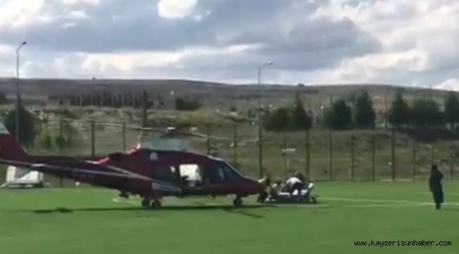 Hasta, bir futbol sahasına inen hava ambulansına nakledilerek şehir merkezindeki özel bir hastaneye sevk edilerek tedavi altına alındı.