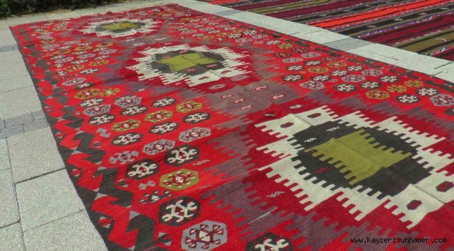 Kayseri'de ilk günkü tazeliğiyle alıcısını bekleyen 120 yıllık kilim adeta zamana meydan okuyor.