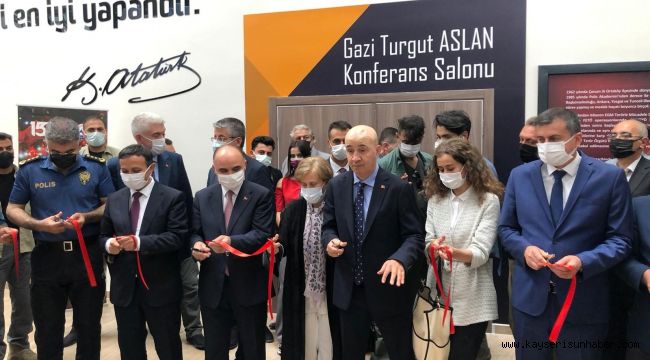 ERÜ Edebiyat Fakültesi'nde yapılan Gazi Turgut Aslan Konferans Salonu'nun açılış törenine, Kayseri Valisi Şehmus Günaydın, Cumhurbaşkanı Başdanışmanı Gazi Turgut Aslan, Cumhuriyet Başsavcısı Abdulkadir Akın, ERÜ Rektörü Prof. Dr. Mustafa Çalış, Kayseri İl Emniyet Müdürü Kamil Karabörk, İl Jandarma Komutanı Albay Nadir Çelik, siyasi parti temsilcileri, protokol üyeleri, şehit aileleri ve öğretim üyeleri katıldı. Törenin açılış konuşmasını yapan ERÜ Rektörü Prof. Dr. Mustafa Çalış, "15 Temmuz 2016'da hain darbe girişimine kalkışan, ülkemizin bütünlüğünü, birliğimizi ve dirliğimizi bozacağını sanan hain FETÖ terör örgütü mensuplarına şanlı tarihi boyunca esarete boyun eğmeyen aziz Türk Milleti çoluk çocuk, genç yaşlı ellerinde bayrak, dillerinde dua ile canlarını hiçe sayarak adeta Çanakkale ruhu ile gereken cevabı vermiştir. Ülkemizi bölmek ve Büyük Türkiye hedeflerimizden bizleri geri koymak isteyen hangi terör örgütü olursa olsun asla ve asla amaçlarına ulaşamayacaklarını bilmeleri gerekir. Tarih boyunca nice zorluklara ve hain saldırılara maruz kalmış aziz milletimiz, 15 Temmuz gecesi olduğu gibi Cumhurbaşkanımız Recep Tayyip Erdoğan'ın önderliğinde tek devlet, tek millet, tek bayrak, tek vatan inancı ile her zaman ve her şartta hainlere gereken cevabı vermiştir, bundan sonra da verecektir. Bu uğurda gösterdiği büyük cesaret ve mücadeleden dolayı Cumhurbaşkanı Başdanışmanı Gazi Turgut Aslan şahsında ve şehit ailelerimiz sahsında tüm şehitlerimize, gazilerimize ve aziz milletimize şükranlarımızı sunuyorum" dedi.