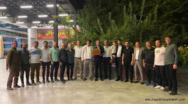 Plaketi, Melikgazi Belediyesi Başkan Yardımcısı Gökhan Kömürcü ve Melikgazi Belediyesi'nden emekli olan takım arkadaşı Remzi Kaya taktim etti.
