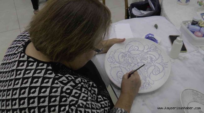 Kayseri'de Kocasinan Halk Eğitim Merkezi tarafından Hayat ve Öğrenme Haftası çerçevesinde 'Yıl Sonu Ürün Sergisi' açılışı yapıldı. 4 sene önce çini boyama sanatı alanında kursa başlayan ve kursa hala devam eden 70 yaşındaki Nermin Barlas da yaptığı eserlerini sergiledi.