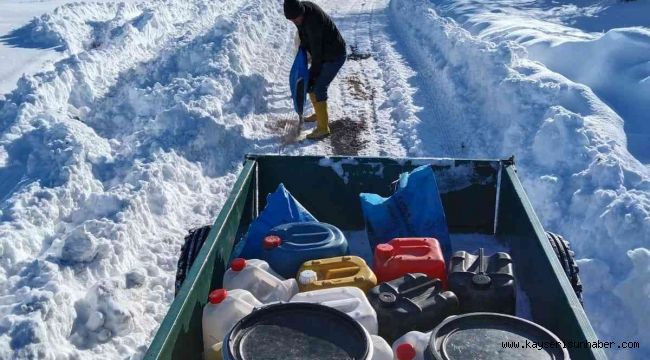 Kayseri'nin Sarıoğlan ilçesinde suları donan çiftçiler, zorlu şartlar altında karları eriterek hayvanlarına su vermeye çalışıyor.