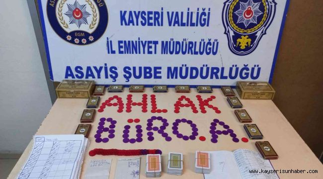 Kayseri İl Emniyet Müdürlüğü Asayiş Şube Müdürlüğü Ahlak Büro Amirliği ekipleri tarafından umuma açık işyerlerinde kumar oynayan ve oynatan şahıslarla ilgili çalışma başlatıldı. Yapılan çalışmalarda Kocasinan ilçesine bağlı Sahabiye Mahallesi'nde bulunan ruhsatsız iş yerine giden ekipler, kapının açılmaması üzerine çıkarılan savcılık kararı ile çilingir yardımıyla içeri girdi. İçeri giren ekipler kumar oyununda kullanılan 36 deste açılmamış 52 oyun kâğıdı, 3 adet kullanılmış 52 oyun kağıdı, 1 adet kullanılmış 104 oyun kağıdı ve 2 adet üzeri rakamlarla yazılı yazboz koçanı buldu. Mekanda bulunan 13 şahıs gerekli işlemler için Ahlak Büro Amirliğine götürülürken, işyerini çalıştıran bir şahsa Kumar Oynanması İçin Yer Ve İmkan Sağlama suçundan işlem yapıldı. Kumar oynayan 12 şahıs hakkında ise Kabahatler Kanunu'ndan idari yaptırım kararı uygulanarak, toplam 21 bin 828 TL para cezası yazıldı.