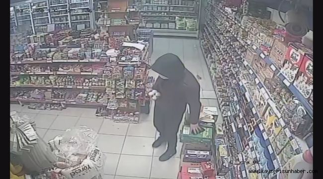 Kayseri'de bir markete alışveriş yapıyormuş gibi girip, market sahibinin cep telefonunu çalan hırsızın görüntüleri güvenlik kameralarına yansıdı.