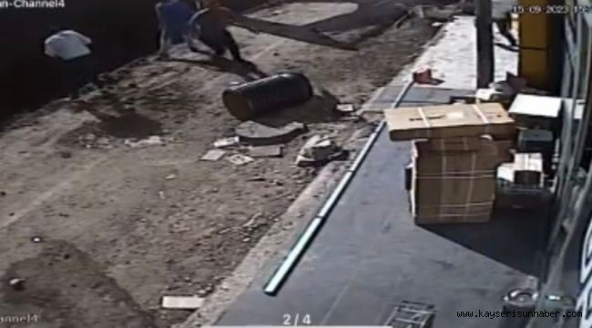 Kayseri'de altyapı çalışması sırasında meydana gelen toprak kaymasında 1 işçi toprak altında kalırken, yaşanan panik güvenlik kamerasına yansıdı.