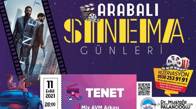'Arabalı Sinema Günleri' etkinliği ile en güzel filmleri sinema severlerle buluşturan Melikgazi Belediyesi bu hafta Tenet filmini gösterime sunuyor.Mix AVM arkasında 11 Eylül 2021...