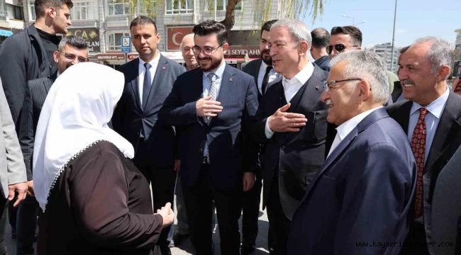 Kayseri Büyükşehir Belediye Başkanı Dr. Memduh Büyükkılıç, Milli Savunma Bakanı ve AK Parti Kayseri 1'inci Sıra Milletvekili Adayı Hulusi Akar ile birlikte, esnaf ziyareti yaptı.