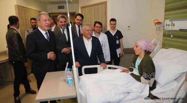 Kayseri Büyükşehir Belediye Başkanı Dr. Memduh Büyükkılıç, Milli Savunma Bakanı Hulusi Akar ile birlikte Şehir Hastanesi'nde tedavi gören hastaları ve depremde yaralanan vatandaşları ziyaret ederek, bayramlarını tebrik etti.