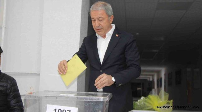 Milli Savunma Bakanı ve AK Parti Kayseri Milletvekili Adayı Hulusi Akar, oyunu Kayseri'de kullandı. Bakan Akar, "Ülkemizin içinde bulunduğu ortamı değerlendirdiğimizde geleceğimiz, güvenliğimiz, refahı bakımından, istikrarı bakımından bu seçimin önemli katkılar sağlayacağına inanıyorum" dedi.