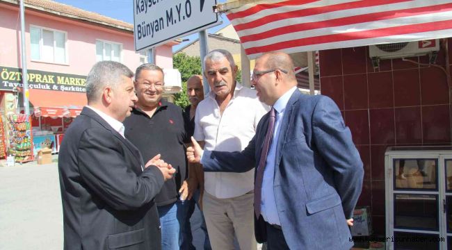 Bünyan Kaymakamı Turgut Gülen ve Belediye Başkanı Özkan Altun, Bünyan Köprü meydanındaki esnafları ziyaret etti. Esnaflarla hasbihal edip talep ve isteklerini dinleyen Başkan Altun, devam eden proje ve çalışmalar hakkında esnaflara bilgi verdi.