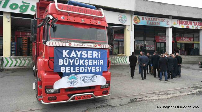 Daha sonra Büyükkılıç, Kayseri Hali'nden 2 kamyon yardım tırını deprem bölgesi Adıyaman'a uğurladı.