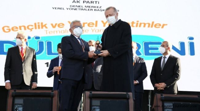 Ödül takdiminde Başkan Büyükkılıç ile Cumhurbaşkanı Erdoğan'a, AK Parti Yerel Yönetimlerden Sorumlu Genel Başkan Yardımcısı Mehmet Özhaseki de eşlik etti.