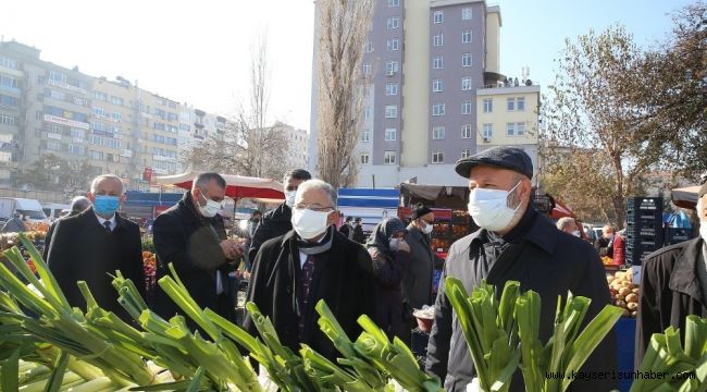 Sahabiye Semt Pazarı ile esnafları ziyaret edip, Pandemi tedbirlerini ve uygulamaları yerinde inceleyen Kayseri Büyükşehir Belediye Başkanı Dr. Memduh Büyükkılıç, "Vatandaşlarımız...