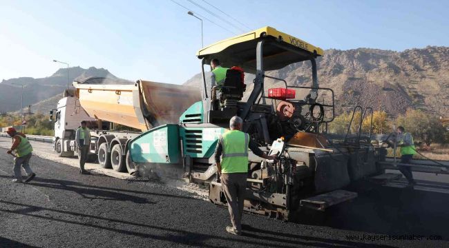 Kayseri Büyükşehir Belediye Başkanı Dr. Memduh Büyükkılıç, ulaşım alanındaki yatırımlarından Fatih Sultan Mehmet Bulvarı'nın iniş yolunda ve alt geçit köprüsü üzerindeki asfalt çalışmalarının aralıksız sürdüğünü belirterek, yol çalışması tamamlandığında 7 bin ton asfalt döküleceğini söyledi.