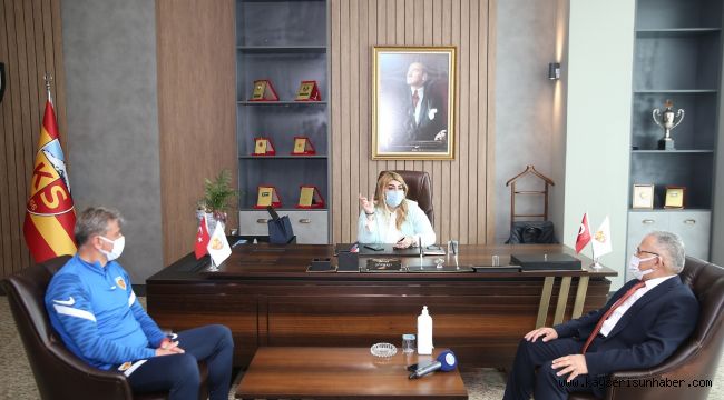 Geçtiğimiz hafta sarı kırmızılı takımın yeni teknik direktörü Hazma Hamzaoğlu ve teknik heyetinin kendisini ziyaret etmesinin ardından iade-i ziyarette bulunan Büyükşehir Belediye Başkanı Dr. Memduh Büyükkılıç'ı, tesislerde HES Kablo Kayserispor Başkanı Berna Gözbaşı, Teknik Direktör Hamza Hamzaoğlu ve yönetim kurulu üyeleri karşıladı.