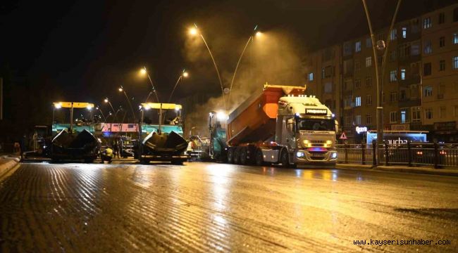 Kayseri Büyükşehir Belediye Başkanı Dr. Memduh Büyükkılıç, Mustafa Kemal Paşa Bulvarı'nda gece mesaisi yapılan çalışmaları yerinde inceledi. Fedakârca çalışan personele kolaylıklar dileyen Başkan Büyükkılıç, çalışmalar çerçevesinde 15 bin ton asfalt kullanıldığını söyledi.