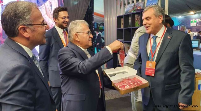 Başkan Büyükkılıç, standı ziyaret eden Şanlıurfa Büyükşehir Belediye Başkanı Zeynel Abidin Beyazgül'e Kayseri'nin ünlü pastırmasını ikram etti. Pastırma doğrayıp, ziyaretçilere ikram eden Büyükkılıç'a ilçe belediye başkanının yanı sıra daire başkanları ve ilgili müdürler de eşlik ediyor.