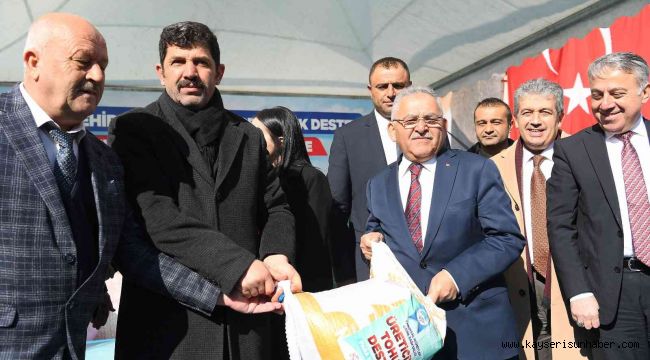 Başkan Büyükkılıç, geçtiğimiz günlerde 12 ilçede uygulanacak ve yüzde 25'i Kayseri Büyükşehir Belediyesi tarafından karşılanan toplam bin 85 ton yazlık ekmeklik buğday tohumluğu dağıtımı yaptıklarını hatırlatarak, "Bin 85 ton buğday dağıttık. Bu çalışmaları bilimsel olarak yapıyoruz. Tarım İl Müdürlüğü ile işbirliği halinde yapıyoruz. Laf olsun diye buğday dağıtmıyoruz, laf olsun diye nohut dağıtmıyoruz. Göstermelik icraatlar yapmıyoruz. O açıdan Allah'a şükürler olsun bilimi önemseyen bir anlayışın sahibiyiz. Organik ürünleri, doğal ürünleri önemsiyoruz, bu konuda çalışmalar yapıyoruz. Elbette makine ve ekipmanlarımızla sizleri destekledik, desteklemeye devam edeceğiz, hiç şüpheniz olmasın" şeklinde konuştu.