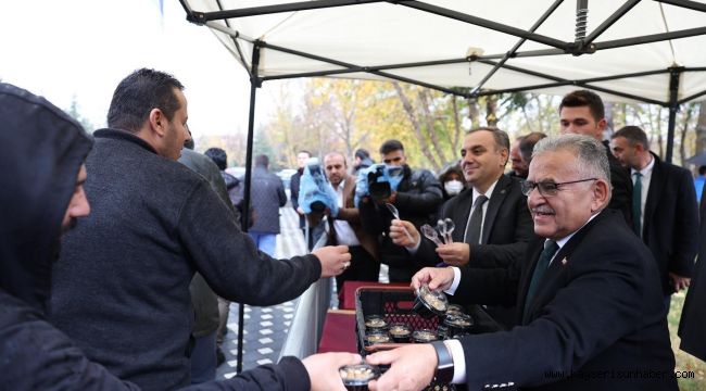 Gönül belediyeciliği faaliyetleri ve gençlere yönelik hizmetlerinin yanı sıra, eğitim öğretimin her kademesindeki öğrencilere olan yakın ilgi ve alakasıyla takdir toplayan Büyükşehir Belediye Başkanı Dr. Memduh Büyükkılıç, Erciyes Üniversitesi yerleşkesinde Cuma namazının ardından Erciyes Üniversitesi Rektörü Prof. Dr. Fatih Altun ile birlikte üniversite öğrencilerine ve vatandaşlara aşure ikramında bulundu.