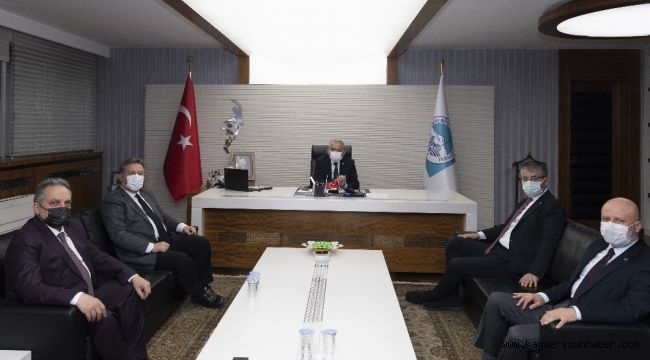 Başkan Büyükkılıç, Büyükşehir Belediyesi'nde AK Parti İl Başkanı Şaban Çopuroğlu, Melikgazi Belediye Başkanı Mustafa Palancıoğlu, Kocasinan Belediye Başkanı Ahmet Çolakbayrakdar ve Talas Belediye Başkanı Mustafa Yalçın bir araya geldi.