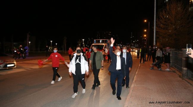 Vatandaşlar da etkinliğe katılan ekiplere hem el sallayıp, teşekkür ettiler hem de balkonlarından cep telefonlarının ışıklarıyla renk kattılar. Başkan Büyükkılıç'a, Spor A.Ş. Genel Müdürü İbrahim Somtaş'ın da eşlik ettiği etkinlik, Türk Bayrağı açılarak sona erdi.