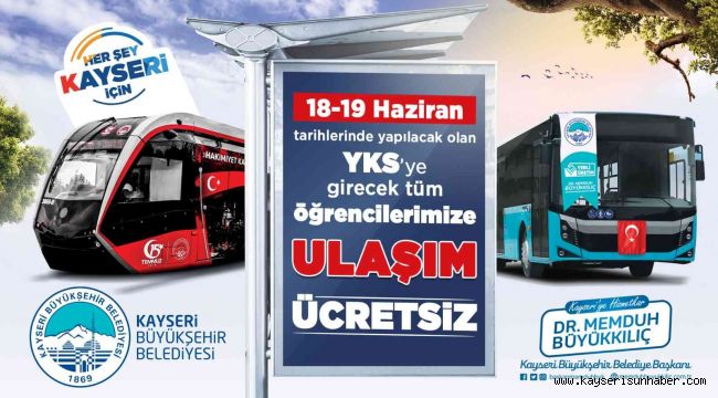 Kayseri Büyükşehir Belediye Başkanı Dr. Memduh Büyükkılıç, 18-19 Haziran tarihlerinde üç ayrı oturumda düzenlenecek Yükseköğretim Kurumları Sınavı'nda (YKS) öğrenciler için toplu ulaşımın ücretsiz olduğunu açıkladı.