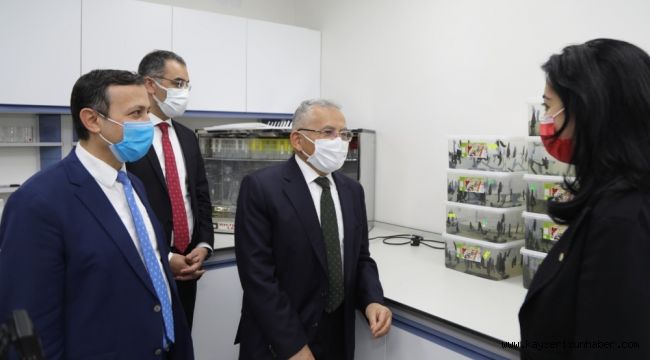 Büyükşehir Belediye Başkanı Dr. Memduh Büyükkılıç ile Erciyes Üniversitesi (ERÜ) Rektörü Prof. Dr. Mustafa Çalış, ERÜ İlaç Uygulama ve Araştırma Merkezi'nde (ERFARMA) incelemelerde bulunarak, merkezde yürütülen çalışmalar hakkında bilgiler aldılar.