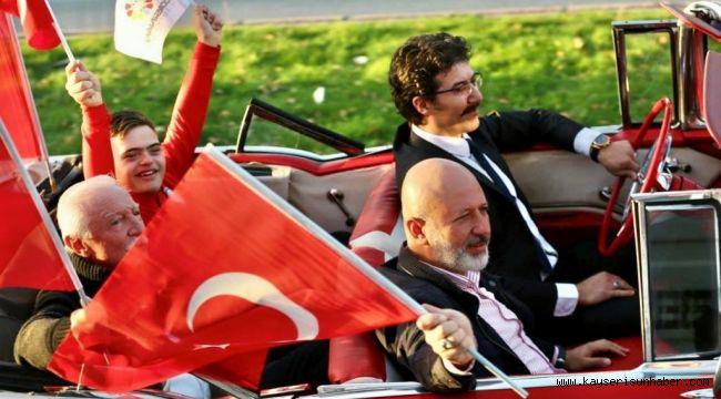 Kocasinan Belediyesi'nin ev sahipliğinde gerçekleştirilen ve Erciyes Klasik Otomobilciler Derneği, Murat 124 Kulübü, Şahin OffRoad ekibi, VosVos Kayseri ekibi ile Pars ekibinin katkı sağladığı 'Ay Yıldız Turu' etkinliği için Sümer Mahallesi'ndeki Amatör Spor Kulüpleri Federasyonu otopark alanında toplanıldı. Mutluluğu gözlerinden okunan şehit ve gazi çocukları, klasik araçları ve motosikletleri yakından inceledi. Klasik araca binen Başkan Çolakbayrakdar, 'Ay Yıldız Turu' temalı şehir turu ile balkonlarda, sokak ve caddelerde bulunan vatandaşları selamladı. Vatandaşın yoğun sevgi seliyle karşılaşan Başkan Çolakbayrakdar, tüm vatandaşların Cumhuriyet Bayramı'nı kutladı. Kocasinan Belediyesi olarak vatandaşların kutlamalara ortak olmak için etkinlikler düzenlediklerini vurgulayan Başkan Çolakbayrakdar; "Cumhuriyetimizin 100. yılı münasebetiyle yapmış olduğumuz 'Ay Yıldız Turu'na yüzlerce araç katıldı. Vosvos, klasik araçlar, motorlar, diğer sosyal gruplarla ile vatandaşlarımızın katılımlarıyla yapmış olduğumuz kortej, yoğun ilgi gördü. Öncelikle Cumhuriyetimizin 100.yılı kutlu olsun. Cumhuriyetimizin kurucusu büyük önder Mustafa Kemal Atatürk ve onun kahraman silah arkadaşlarını, bu toprakları vatan yapan aziz şehitlerimizi sonsuz minnet, şükran ve rahmetle anıyorum. Tüm hemşerilerimin Cumhuriyet Bayram'ını en içten duygularla kutluyorum. Büyük bir coşkuyla kutlamalar yapıyoruz ve hemşehrilerimiz kutlamalara eşlik ediyorlar. Bugün gazi ailelerimizin çocukları şehitlerimizin emaneti evlatlarımız bizlerle birlikteydi. Bu güzel anı yaşatan Erciyes Klasik Otomobilciler Derneği'ne, Murat 124 Kulübü'ne, Şahin OffRoad ekibi, VosVos Kayseri ekibi ve Pars ekibine teşekkür ediyorum. Cennet vatanda ilahi nihaiyete kadar Cumhuriyetimizin ve Ay Yıldız Bayrağımızın gölgesi altında ezan sesiyle bu topraklarda yaşamak nasip olsun" ifadelerini kullandı.