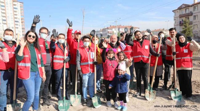 Kocasinan Belediye Başkanı Ahmet Çolakbayrakdar, Türk Kızılay gönüllüleri ile birlikte Yakut Mahallesi'nde 200 çam ve meyve ağacını toprakla buluşturdu.