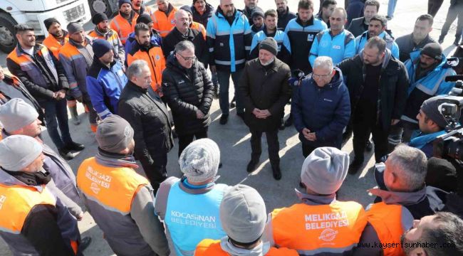 Büyükşehir, Kocasinan, Melikgazi, Talas, Hacılar ve Yahyalı belediyelerinden oluşturulan 20 araç, 100'e yakın çöp konteynırı, çadırlar, barınma, ısınma malzemelerinin yüklendiği araçlar ile 100 personel, Kahramanmaraş'a doğru yola çıktı.
