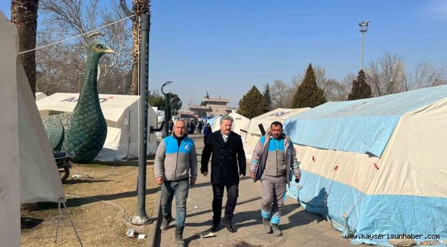 Maraş deprem bölgesine ilk günden itibaren destek olmak için Melikgazi Belediyesi olarak seyyar WC ve duş, 115'ün üzerinde iş makinası ve 350'e yakın personel ile destek olduklarını hatırlatan Başkan Dr. Mustafa Palancıoğlu, "Deprem bölgesinde arama ve kurtarma ekipleri oluşturduk. Sonra her gün ihtiyaç duyulan malzemeleri temin ederek bir koordinasyon içerisinde deprem bölgesine gönderdik. Şehrimizde genel deprem yardım çalışmalarını organize ettik. Yardım ve çalışmalarımız tüm hızı ile devam ediyor. Deprem bölgelerinde enkaz kaldırma, temizlik, çöp toplama, ilaçlama ve yapılması gerekenler için toplantılar yaparak gerekli planlamaları yaptık. Ancak bu çalışmaları gerçekleştirirken de Melikgazi ilçemizde tüm hizmet ve çalışmalar aksatılmadan devam etmektedir. Melikgazi halkı da mağdur edilmemektedir. Bundan dolayı çalışmaları gerçekleştiren fedakâr ve vefakâr çalışanlarımıza teşekkür ediyorum" şeklinde konuştu.