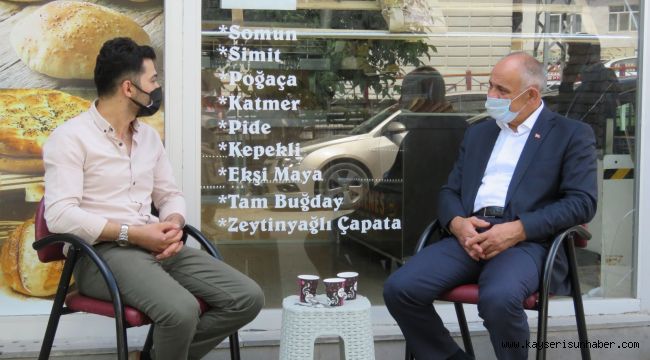 Yahyalı'daki esnaf ve iş adamlarını sık sık ziyaret eden Başkan Esat Öztürk, bugünkü mesaisine ilçede yeni açılan ekmek fırınını ziyaret ederek başladı. Ekmek fırını işletmecisiyle sabah çayı içen Başkan Öztürk, fırında üretilen mamuller hakkında bilgiler alarak fırın işletmecisine hayırlı bol kazançlar diledi.