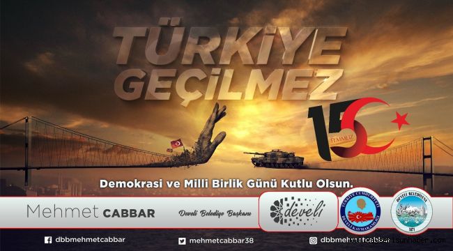 Develi Belediye Başkanı Mehmet Cabbar, 15 Temmuz Milli Birlik ve Beraberlik Günü dolayısıyla bir mesaj yayımladı.Başkan Mehmet Cabbar, mesajında şu ifadelere yer verdi; "15 Temmuz 2016...