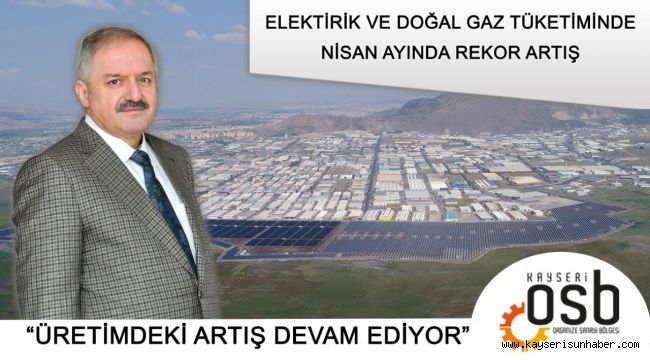 Kayseri Organize Sanayi Bölgesi'ndeki doğal gaz ve elektrik tüketiminin Nisan ayında rekor bir artış gösterdiğini dile getiren Başkan Tahir Nursaçan, "Nisan ayındaki elektrik tüketimimiz 107 milyon kilovatsaati aştı. Geçen yıl Nisan ayı rakamı 63,5 milyon kilovatsaatti. Elektrik tüketiminde geçen yıla göre artış oranı yüzde 68,4 oldu. Yılın ilk dört ayındaki elektrik tüketimimiz ise 442 milyon 153 bin kilovatsaate yükseldi. Yılın ilk dört ayında geçen yıla göre yüzde 18,2'lik bir artış gerçekleşti" dedi. Doğal gaz tüketiminde de benzer bir artışın yakalandığını ifade eden Kayseri OSB Başkanı Tahir Nursaçan, "Geçen yılın nisan ayında 6 milyon 129 bin metreküp olan doğal gaz tüketimimiz bu yıl yüzde 71'lik artışla 10 milyon 483 bin metreküpe çıktı. Yılın ilk dört aylık verilerine bakıldığında ise tüketim miktarımızın geçen yılın aynı dönemine göre yüzde 19,7'lik artışla 48 milyon 571 bin metreküpe çıktığını gösteriyor" diye konuştu.