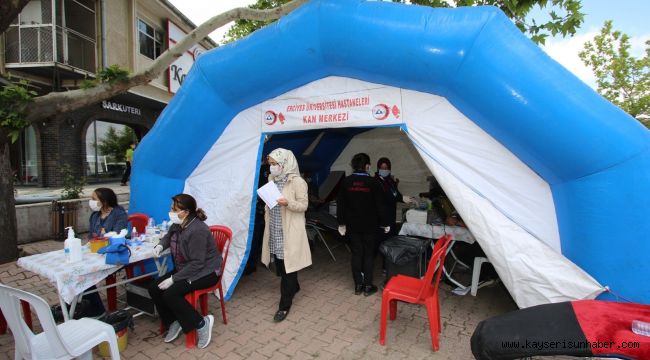 Hacılar Belediye Başkanı Bilal Özdoğan, Hacılar ilçe meydanına kurulan Erciyes Üniversitesi kan merkezi çadırını ziyaret ederek kan bağışında bulundu.