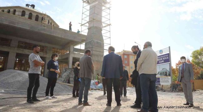 Melikgazi Belediye Başkanı Dr. Mustafa Palancıoğlu, TOKİ Demokrasi Mahallesi'nde 2 ay önce temeli atılan Dursun Koca Cami'ni inceleyerek yapılan çalışmalar hakkında bilgi aldı.
