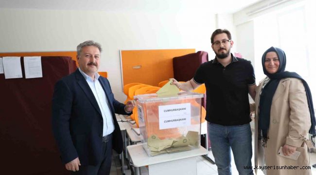 Melikgazi Belediye Başkanı Dr. Mustafa Palancıoğlu Şehit Cennet Yiğit İmamhatip Ortaokulunda eşi Emel Palancıoğlu ile birlikte Cumhurbaşkanlığı seçimi 2. Turu için oyunu kullandı.