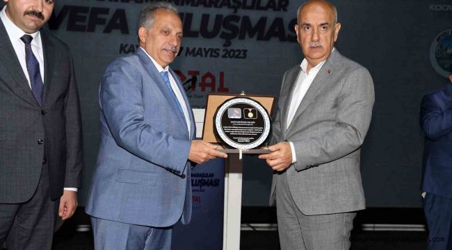 Teşekkür plaketini Tarım ve Orman Bakanı Vahit Kirişçi'nin elinden alan Başkan Yalçın, 'Vefa Buluşması' ile Kayseri'de yaşayan Kahramanmaraşlılarla bir araya gelmekten duyduğu memnuniyeti belirterek, "İlk günden itibaren yaraların sarılması adına yanında olduğumuz depremzede kardeşlerimize sağladığımız destekler için tarafıma takdim edilen plaketten dolayı Sayın Bakanıma ve kıymetli Kahramanmaraşlılara teşekkür ediyorum. Rabbim bir daha böyle acılar yaşatmasın. Çok uzun yıllardır bu şehirde birlikte yaşadığımız Kahramanmaraşlı kardeşlerimizle olan birlik ve beraberlimizi de daim eylesin" dedi.