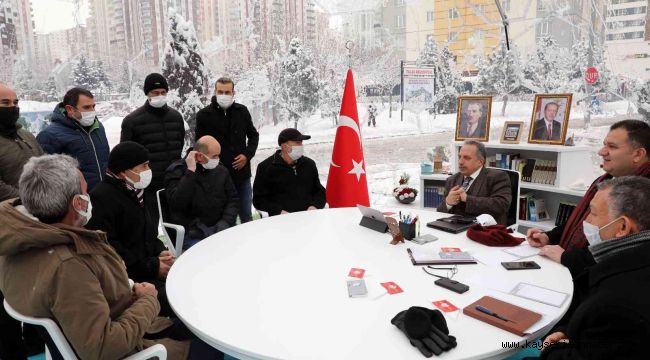 Talas Belediye Başkanı Mustafa Yalçın tarafından ilk kez iki hafta önce başlatılan "Şeffaf Odada Başkanla Baş Başa" uygulaması Mevlana Mahalle Meydanında kar ve soğuk havaya rağmen bütün hızıyla sürüyor.