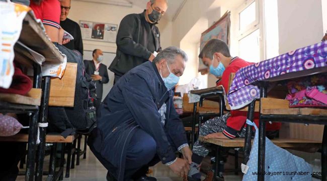 Başkan Yalçın daha sonra Çatakdere Mahallesi'ne geçti. Burada Türk Kızılayı Kayseri şubesi eski yöneticileri ve Talas İlçe Milli Eğitim yetkilileriyle ilkokula giden Başkan Yalçın, öğrencilerden büyük ilgi gördü. Öğrencilerin eğitim öğretimin yeniden başlaması heyecanına ortak olan Başkan Yalçın kendilerine kışlık bot ile çorap hediye etti.