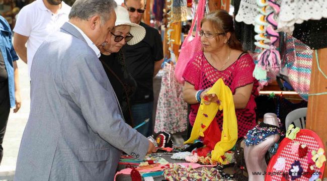 Talas Belediyesi ve Kadın Girişimi Üretimi ve İşletme Kooperatifi iş birliğiyle başlatılan ve her ayın 1. ve 3. pazar günü kurulan 'Maharetli Eller Kadın Üretici Pazarı' bu hafta da vatandaşların uğrak yeri oldu. Pazardaki üreticileri ziyaret eden Talas Belediye Başkanı Mustafa Yalçın hem alışveriş yaptı hem de sohbet etti.