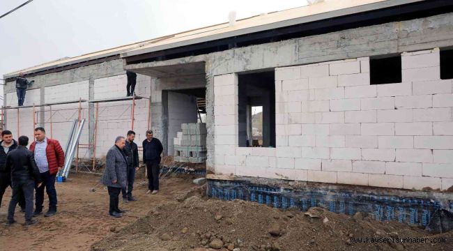 Talas Belediye Başkanı Mustafa Yalçın, ilçenin kırsal mahallelerinden Yamaçlı'da yapımı süren sosyal tesis ve imam evi inşaatını inceledi.
