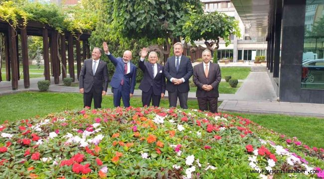 Başkanlar, Büyükşehir Belediyesi bahçesinde bir süre sohbet edip, günün anısına hatıra fotoğrafı da çektirdi.