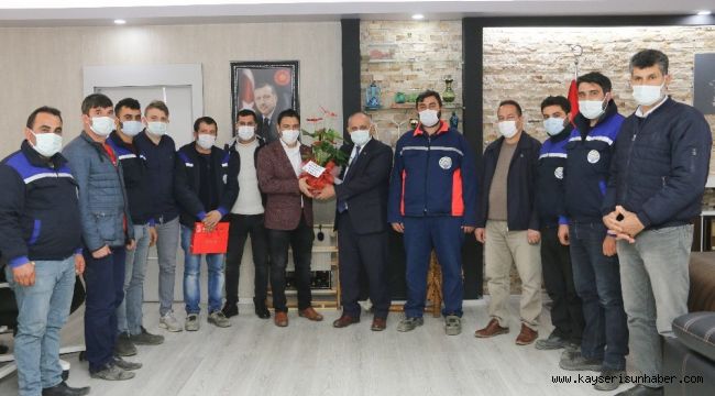 Yahyalı Belediyesi işçileri, geçen hafta toplu iş sözleşmesini imzalayan Yahyalı Belediye Başkanı Esat Öztürk' e teşekkür ziyaretinde bulundular.