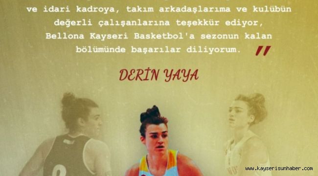 Bellona Kayseri Basketbol takımı kadrosunda yer alan Derin Yaya takımdan ayrıldığını açıkladı.