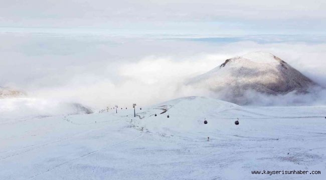 Beyaza bürünen Erciyes'te kar kalınlığı 10 santim oldu