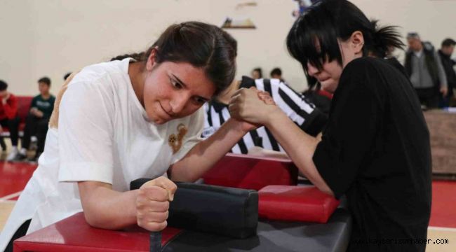 Kayseri'de Gençlik ve Spor İl Müdürlüğü Okul Sporları Gençler Bilek Güreşi müsabakaları başladı.
