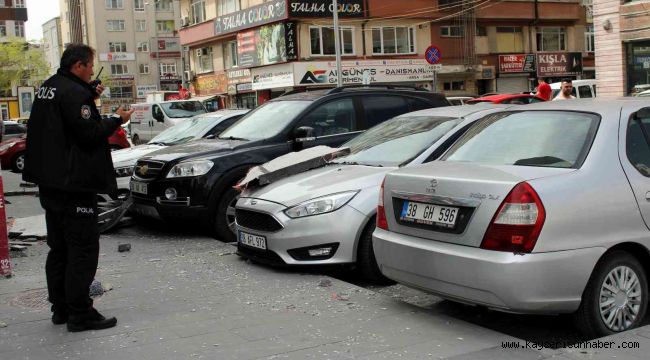 Kayseri'de etkili olan fırtına nedeniyle binalardan kopan parçalar araçların üzerine düştü. Araçlarda büyük çapta maddi hasar meydana gelirken o anlar ise güvenlik kameralarınca kaydedildi.