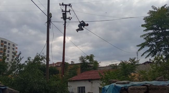 Kayseri'nin Kocasinan ilçesinde intihar etmek isteyen şahıs, elektrik kablolarına tırmandı. Şahsı gören vatandaşlar şaşırırken, ikna edilerek indirilen şahıs tedavi altına alındı.