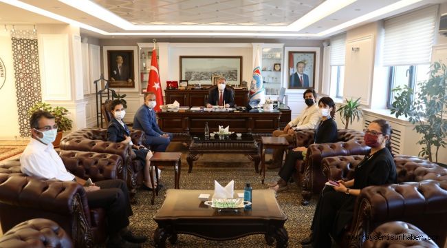 Birleşmiş Milletler Dünya Gıda Örgütü Türkiye Temsilcisi Nils Grede, Uluslararası Gençlik Dayanışma Derneği Yönetim Kurulu Başkanı Ahmet Korkutata ve beraberindeki heyet Melikgazi Belediye Başkanı Dr. Mustafa Palancıoğlu'nu makamında ziyaret ettiler.